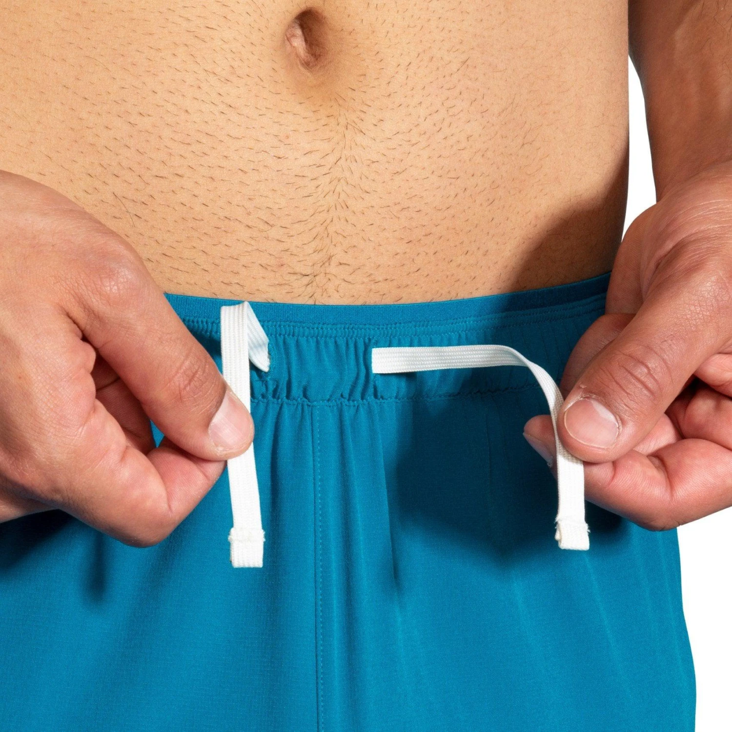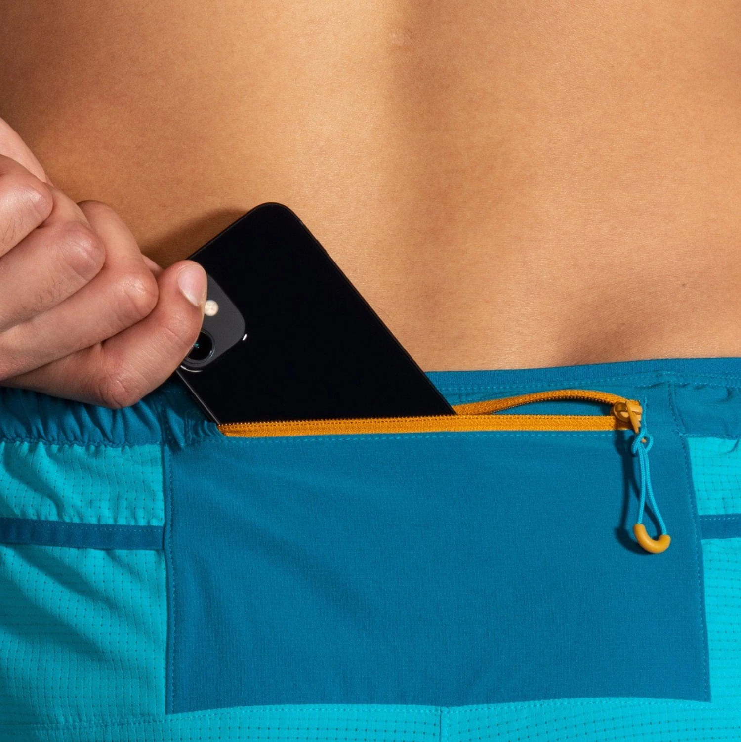 Notched side-split short allows for full range of motion while chafe-free boxer brief liner offers support.