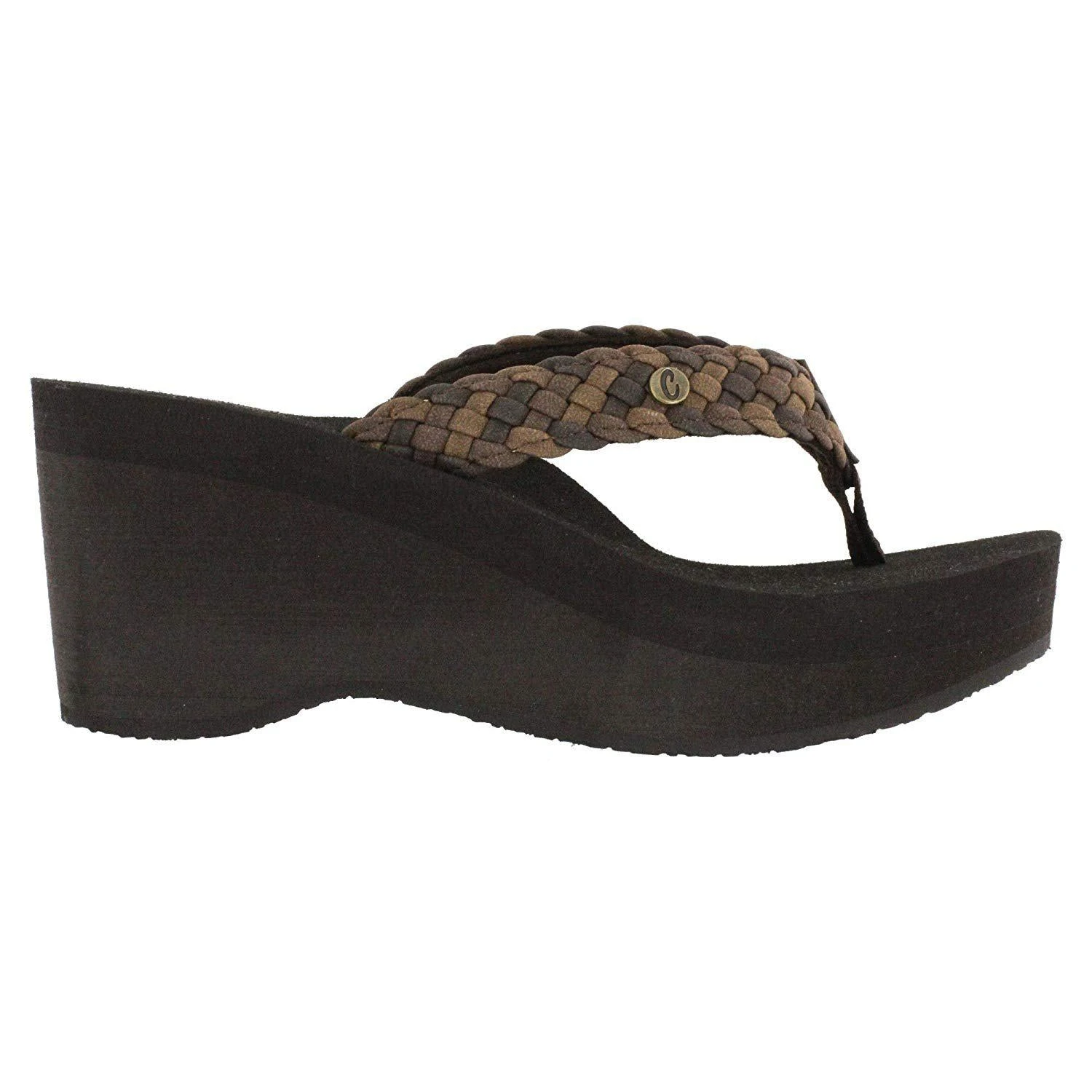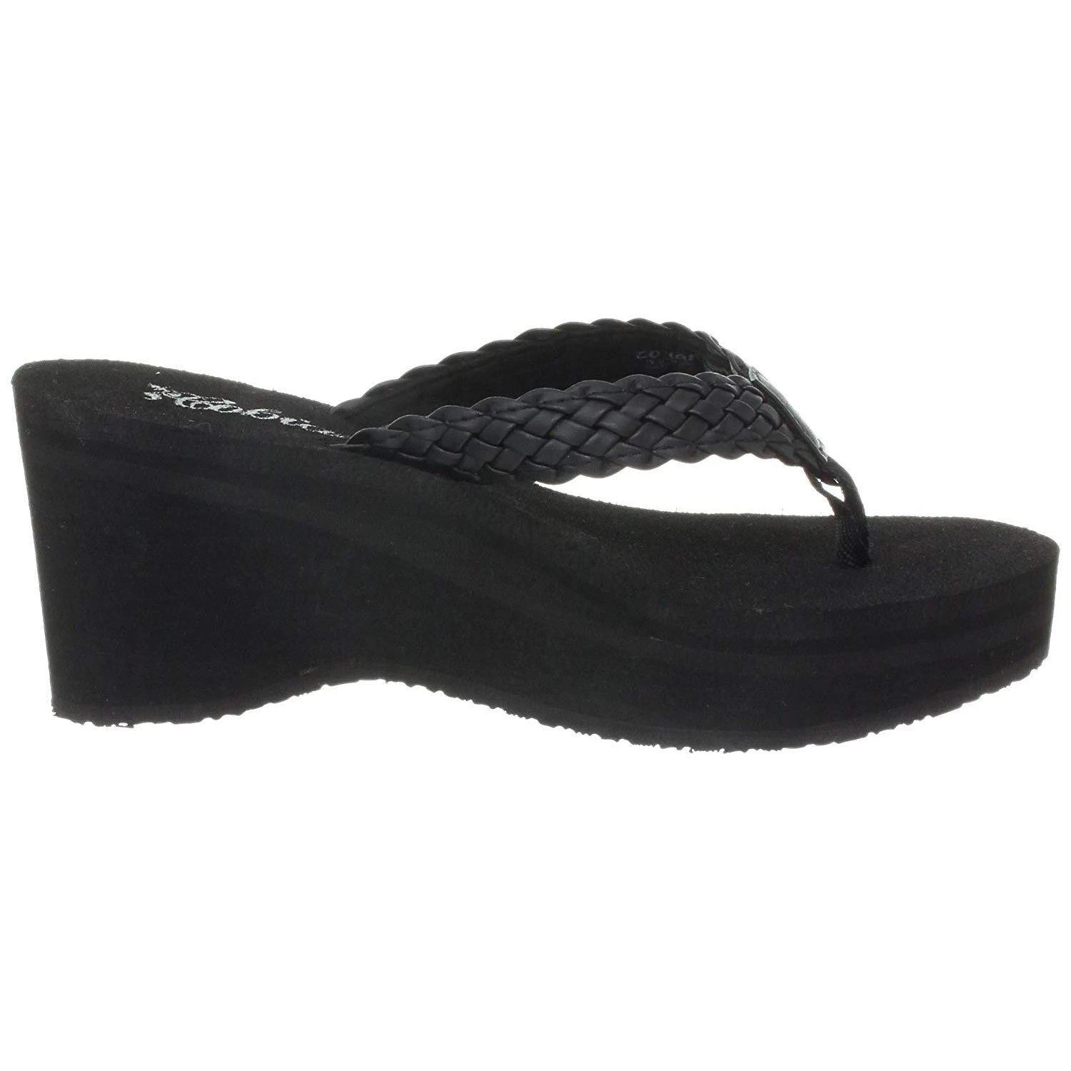 - Platform wedge sandal featuring braided thong strap with logo-engraved medallion