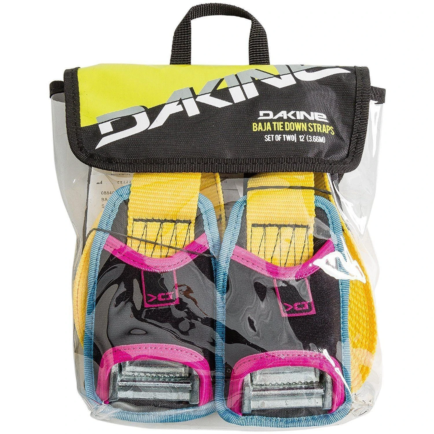 The Dakine Baja Tie Down Straps are heavy-duty straps designed for car roof racks. These straps are sold in sets of two 12-foot straps with 1-3/8 inch cam buckles for secure tightening. The Baja Tie Down Straps also feature a protective neoprene buckle housing to protect your board. Get rid of those old bungee cords and get these heavy duty Dakine Baja Tie Down Straps to secure your board!
