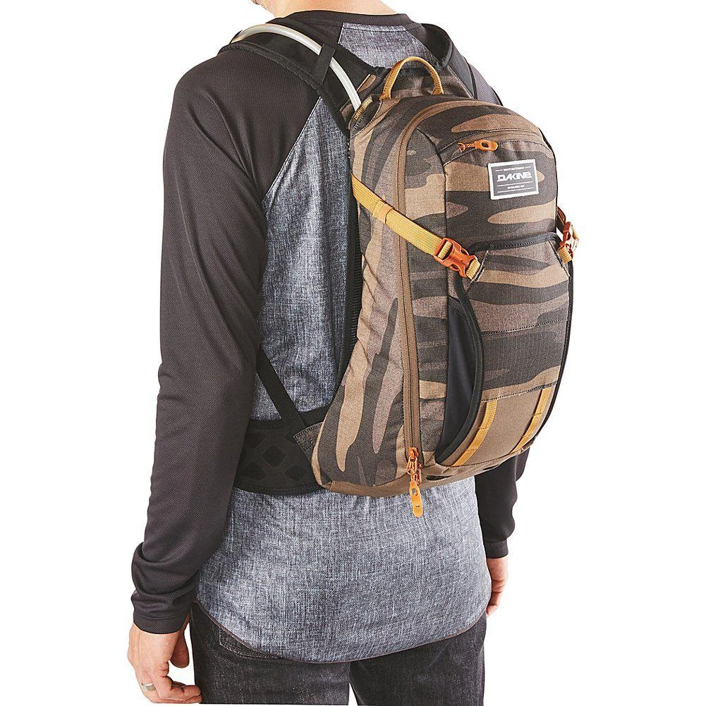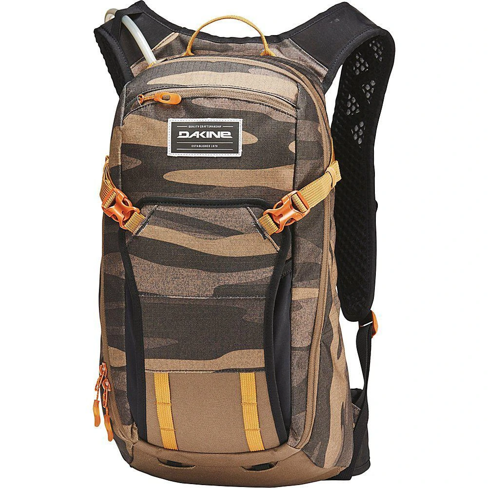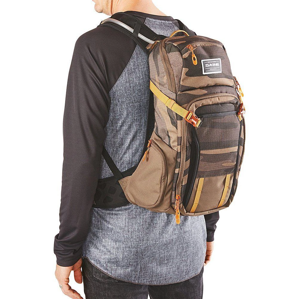 Get psyched on Drafter 14L Backpack whether you bike mountains, cycle sidewalks, or ride sandstone. If your bag gets dirty, Dakine recommend hand washing with mild soap (like Nikwax Tech Wash), cold water and a soft bristle brush. If hand washing is not going to do the trick, use a front loader washing machine. To ensure your backpack doesn’t get tangled, place inside a pillowcase or mesh bag before washing. Always use cold water, mild soap and run on a gentle cycle. Never bleach your pack. Hang to dry in a warm but shady place, ensuring both inside and out are dry before storing. Details: 400D nylon ripstop, 600D polyester, 3L / 100oz Hydrapak lumbar reservoir with quick disconnect, high-flow blaster bite valve with shut-off, air suspension backpanel, DK impact CE-certified spine protector compatible (not included), breathable ergonomic shoulder straps, full face or trail helmet carry, deployable armor carry straps, quick stash zippered side pocket, fleece lined sunglass, phone pocket, internal organizer pockets, magnetic hydration hose clip, reflective logo, limited lifetime warranty. Dimensions: 854 cubic inches (14 liters), 19” x 12” x 9” (48 x 30 x 23cm), 2.5 lbs. (1.1kg). Material: Nylon, Polyester.