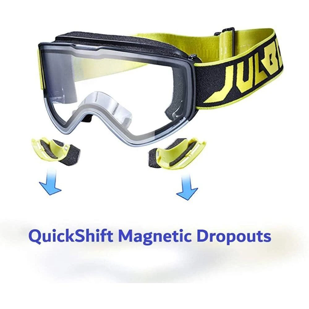 Julbo’s patented Switch Air System allows for unmatched venting with 2 magnetic drop-out pieces in the bottom of the frame, providing vital space for air to flow in & exhaust fog out.