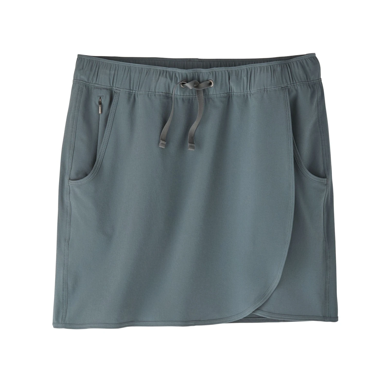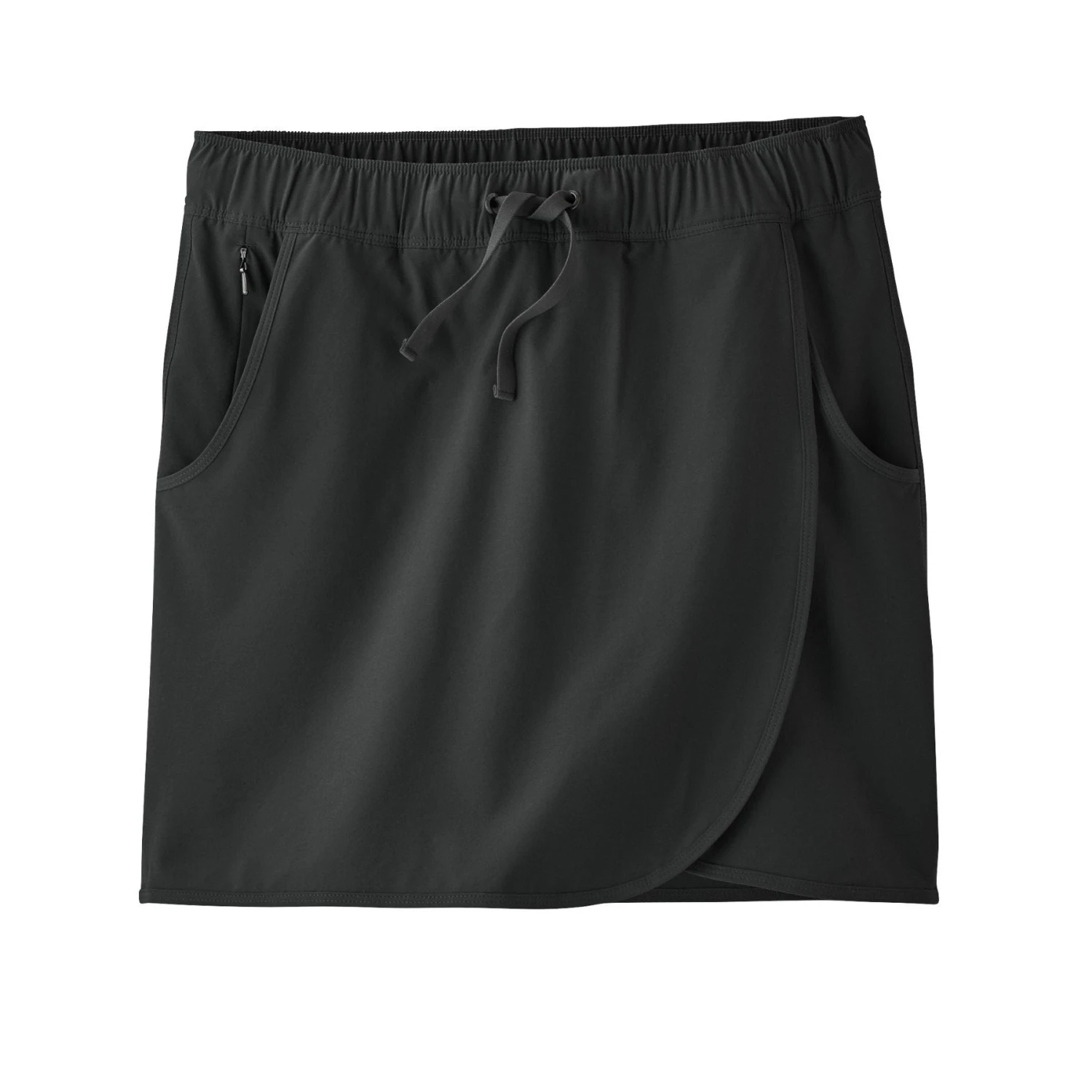Stretchy recycled polyester/spandex outer skirt has polyester/spandex inner shorts for mobility across a range of activities