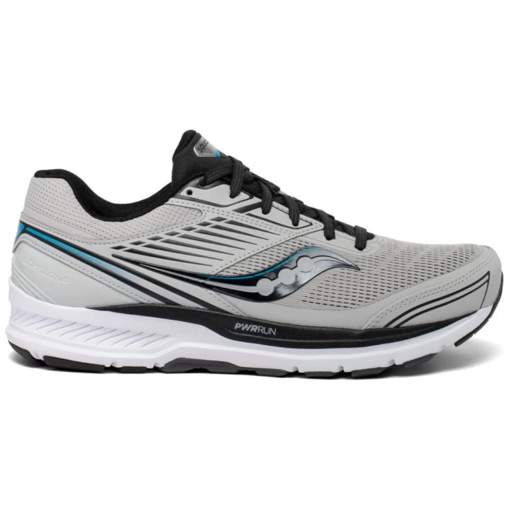 A feel-good ride that accommodates all who run.The Saucony Echelon 8 is a protective shoe designed for a wide range of needs. It features feel-good cushioning, ensuring comfort during runs or walks. The shoe provides a stable ride and a generous yet secure fit. With Saucony’s PWRRUN cushioning and a foundation platform, the Echelon 8 delivers both springy energy return and durability. Whether you’re a flat-footed runner or need extra space for orthotic inserts, this shoe has you covered. Â Features & BenefitsPWRRUN cushioning provides springy energy return and plenty of durability. Foundation Platform provides a stable, wide base. Orthotic-friendly sockliner provides ultra-plush step-in comfort, or can be removed to accommodate after-market insoles TRI-FLEX outsole optimizes flexibility. FORMFIT hugs the foot in 3D comfort and delivers our most personalized fit yet. Engineered mesh toe box is spacious to let feet splay and breathe. 3D Support Frame adds additional security at the heel. Â SpecificationsCategory: Neutral Heel-to-toe Offset: 8mm (35/27) Weight: 12.5oz (354g) Sustainability: This style is vegan and contains recycled upper materials. Â |