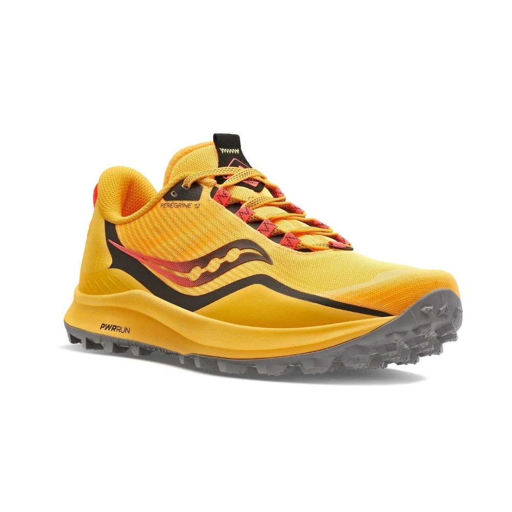 No speed limitsNamed for the fastest bird on Earth, the incredibly light and agile Peregrine 12 more than lives up to its name. With better traction and more protection, nothing gets between you and the trail ahead. Lighter, faster, and more comfortable than ever, your trail run just got exponentially more fun. Â Features & BenefitsOver an ounce lighter than its predecessor, the Peregrine 12 delivers more speed for an incredibly fun trail outing. Ditch debris with a redesigned lug pattern, while PWRTRAC rubber ensures maximum traction and grip. There’s no amount of rugged terrain you can’t tackle. A new and improved rock plate sheds moisture and gives you more flexibility for each and every step. Â SpecificationsCategory: Neutral Heel-to-toe Offset: 4mm (26.5mm Heel/22.5mm Forefoot) Weight: Shoe: 9.7oz (275g) Sustainability: This style is vegan and contains recycled upper materials. Â |